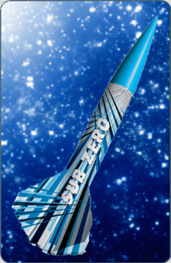 The SUB ZERO is a very sturdy and stable traditional sport model. Equipped with a 29mm motor tube the SUB ZERO is capable of flying on a wide range of motor choices. The main airframe is constructed from high quality kraft tubing with laser cut fin slots. The fins as well as the centering rings are laser cut from 1/8” air-craft grade plywood. Other key features include: a polystyrene nose cone; pre-assembled nylon parachute; a stainless steel motor retainer with hardware .Note **Decals are not included with this kit** The heart of this kit is a strobing high power 1 watt LED module driven by an electronic timer circuit and powered from a pair of 3 volt lithium battery. The LED, electronic timer and battery are assembled and installed into a translucent 3" nose cone as part of the Sub Zero model rocket kit.
